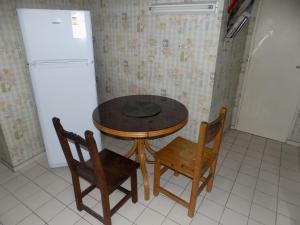 cocina con mesa, 2 sillas y refrigerador en Casa de Familia - Solo Para Mujeres *Woman ONLY* en Buenos Aires